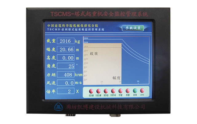 實時顯示監(jiān)控塔機高度、幅度、起重量、回轉(zhuǎn)角度、環(huán)境風(fēng)速及倍率等工作信息,對危險動作提供預(yù)警報警及控制輸出。