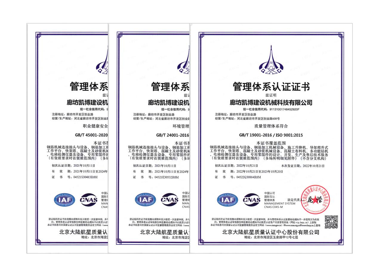 2022年9月26日至30日,北京大陸航星質(zhì)量認(rèn)證中心股份有限公司對廊坊凱博建設(shè)機械科技有限公司開展了為期5天的質(zhì)量、環(huán)境、職業(yè)健康安全管理體系外審工作,在公司領(lǐng)導(dǎo)的高度重視和各職能部門的積極配合下,外審工作順利完成。