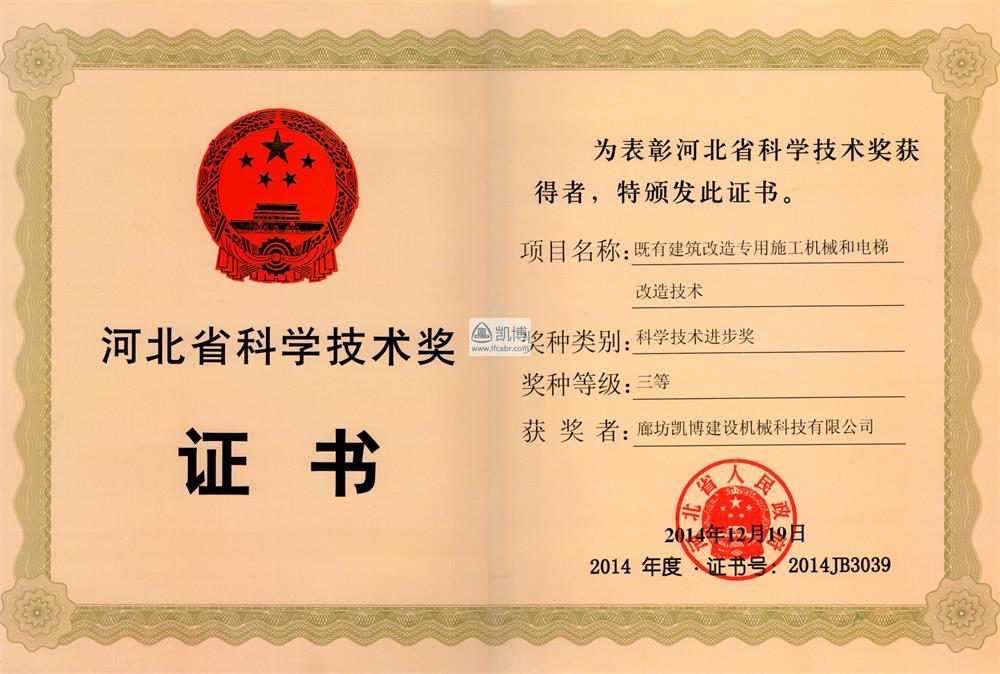 河北省科學(xué)技術(shù)獎(jiǎng)三等獎(jiǎng) 既有建筑改造施工機(jī)械和電梯改造技術(shù)