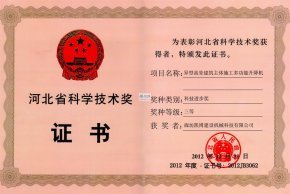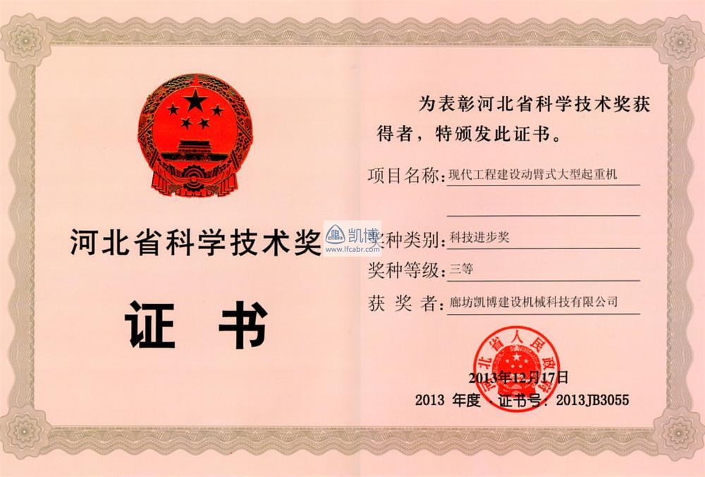 河北省科學(xué)技術(shù)獎(jiǎng)三等獎(jiǎng) 現(xiàn)代工程建設(shè)動(dòng)臂式大型起重機(jī)
