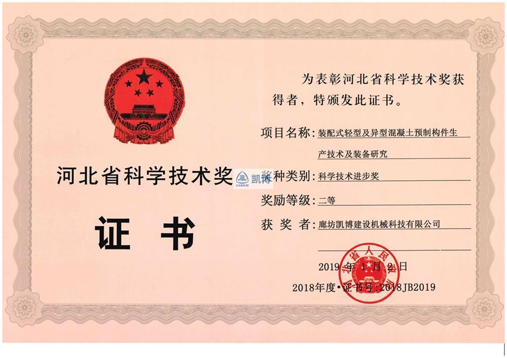 河北省科學(xué)技術(shù)獎(jiǎng)二等獎(jiǎng) 裝配式輕型及異型混凝土預(yù)制構(gòu)件生產(chǎn)技術(shù)及裝備研究