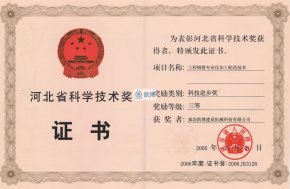 河北省科學(xué)技術(shù)獎(jiǎng)三等獎(jiǎng) 工程鋼筋專業(yè)化加工配送技術(shù)