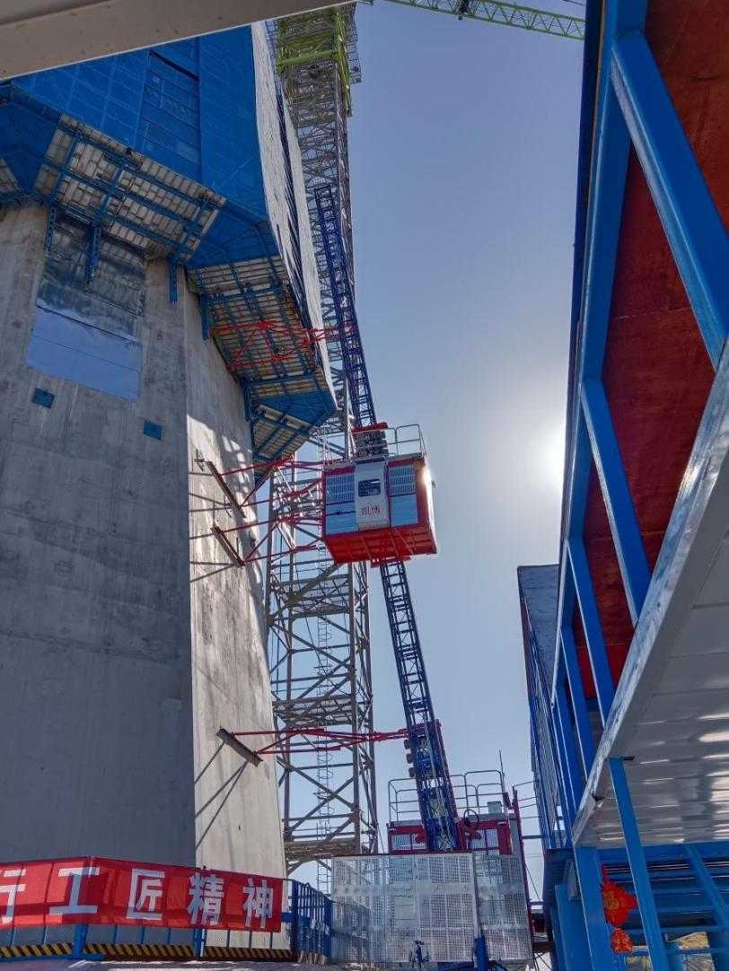 廊坊凱博建設(shè)機(jī)械科技有限公司根據(jù)枝江百里洲長(zhǎng)江大橋的外形和具體施工要求,提供了SC200型斜直兩用施工升降機(jī)設(shè)備。該型升降機(jī)適用于外立面呈異型或變斜度大的橋塔、煙囪等建筑物施工中,在不增加任何部件的情況下可滿(mǎn)足在不同斜度建筑物的使用要求,能做到在0~15°之間任意變換角度,具有良好的適應(yīng)性。