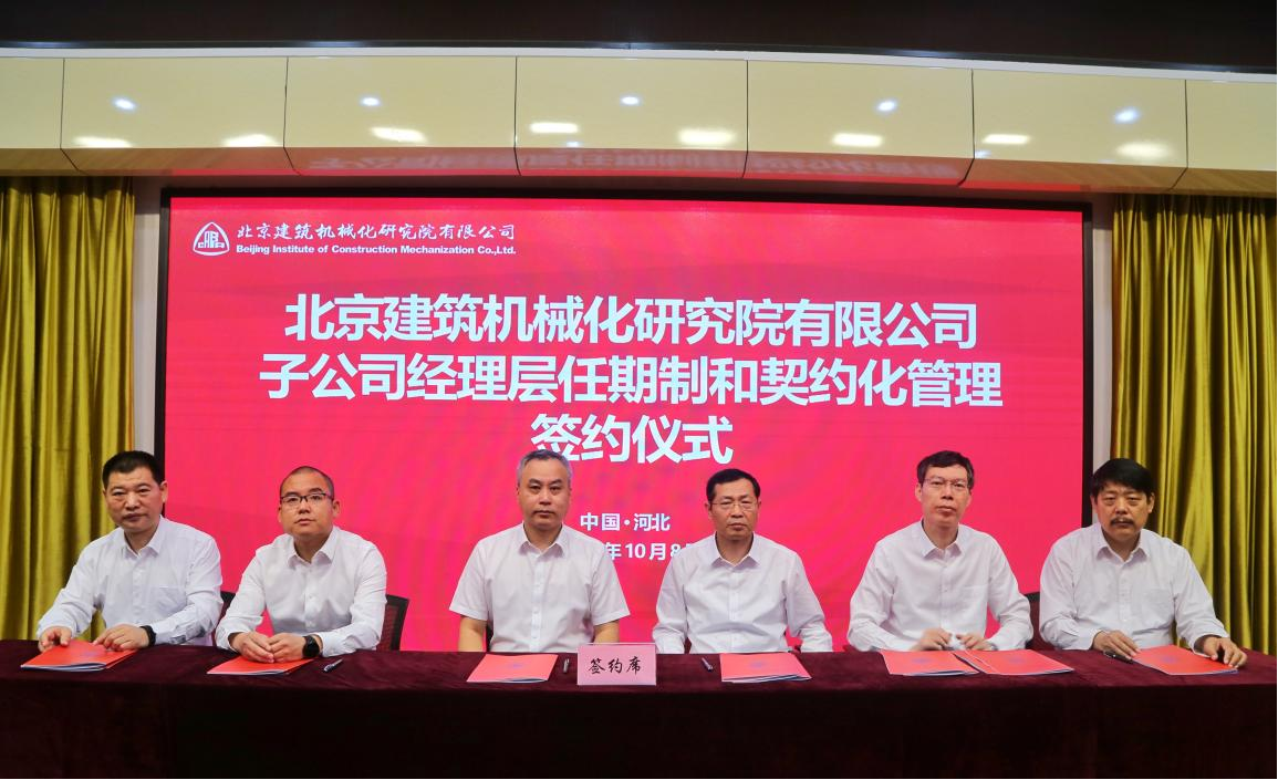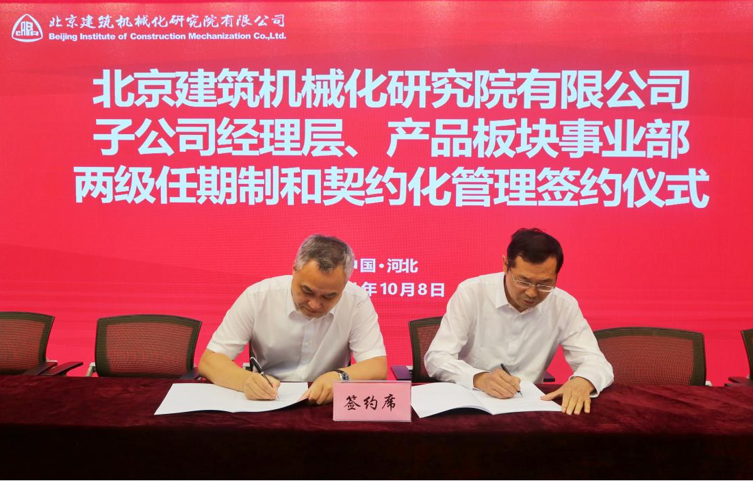 10月8日,北京建機院舉行所屬子公司廊坊凱博建設(shè)機械科技有限公司以及公司所屬事業(yè)部兩級經(jīng)理層成員任期制與契約化管理簽約儀式。北京建機院領(lǐng)導(dǎo)、公司部門以上負(fù)責(zé)人等共計80余人參加簽約儀式。